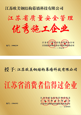 江蘇歐美鋼結(jié)構(gòu)幕墻科技有限公司鄭州分公司是集團(tuán)按全國發(fā)展規(guī)劃部署要求,特在鄭州設(shè)立的分公司。本公司前身為八一網(wǎng)架集團(tuán)有限公司,隸屬于解放軍 總后勤部,成立于1956年,2006年企業(yè)改制成立江蘇歐美鋼結(jié)構(gòu)科技有限公司,是住建部核定的鋼結(jié)構(gòu)工程承包壹級、建筑幕墻工程承包壹級、建筑裝飾裝修工程承包貳級、金屬門窗工程承包叁級、地基與基礎(chǔ)工程承包叁級。同時兼有鋼結(jié)構(gòu),幕墻,裝飾工程三項甲 級設(shè)計資質(zhì)。是一家集鋼結(jié)構(gòu)、建筑幕墻、金屬門窗、地基與基礎(chǔ)及建筑裝修裝飾為一體的大型綜合性建筑企業(yè)。